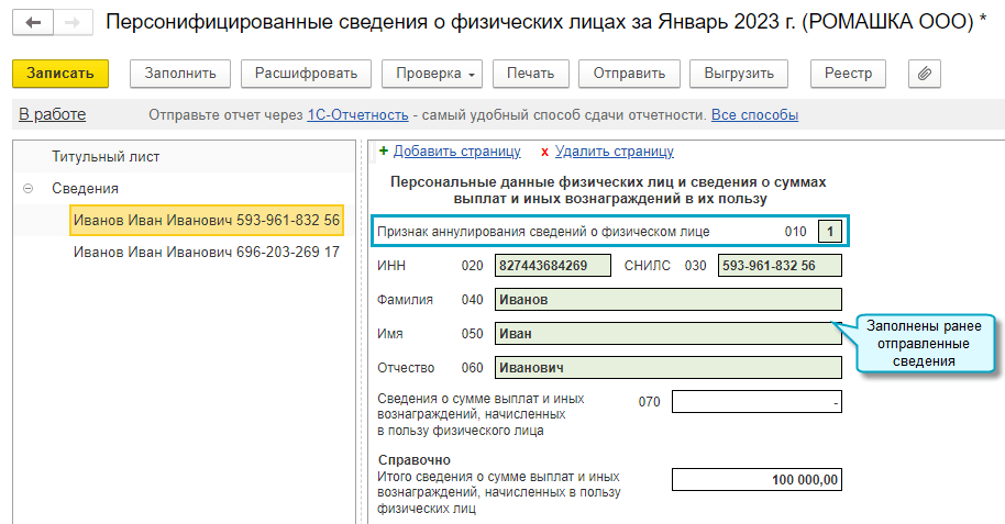 Добавлено заполнение уточненных Персонифицированных сведений о физических лицах, когда вносятся изменения в ранее отправленные сведения (Приказ ФНС России от 29.09.2022 № ЕД-7-11/878@).