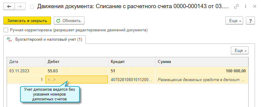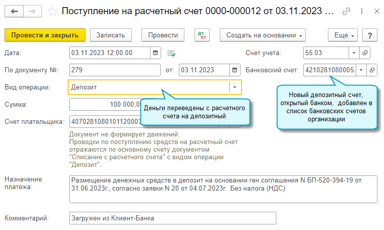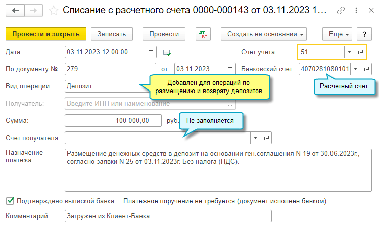 Если учет депозитов ведется по номерам депозитных счетов, то требуется загружать банковские выписки и по расчетному счету, и по депозитному счету.
