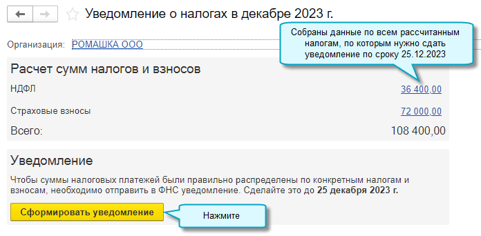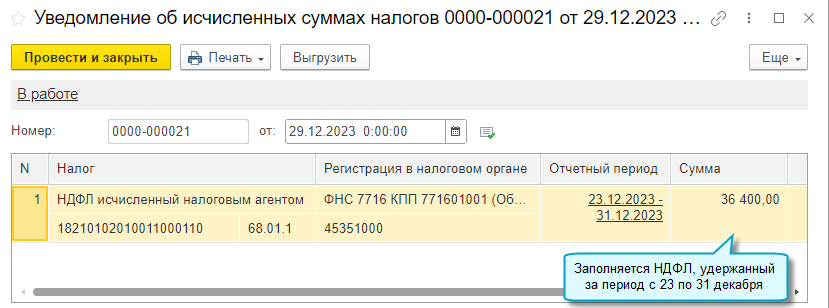 Добавлена возможность подготовить в декабре два уведомления по НДФЛ сотрудников: