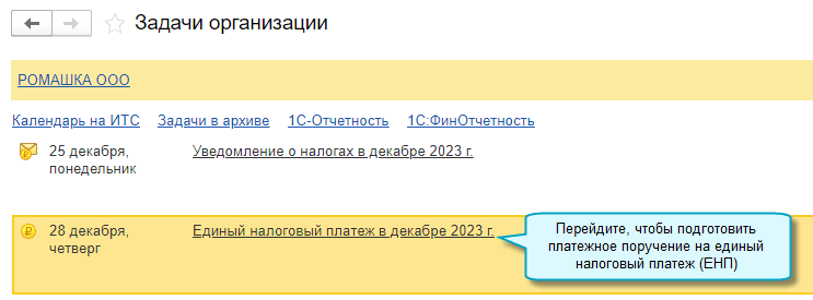 Упрощена отправка уведомлений и единого налогового платежа в задачах организации. Теперь в се уведомления по налогам с одинаковым сроком объединены в единое уведомление, а все платежи - в один платеж.