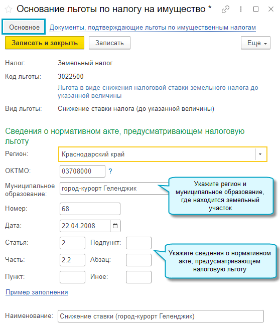 Для уже применяемых льгот потребуется дозаполнить данные о нормативном акте, предусматривающем льготу, и подтверждающих документах.
