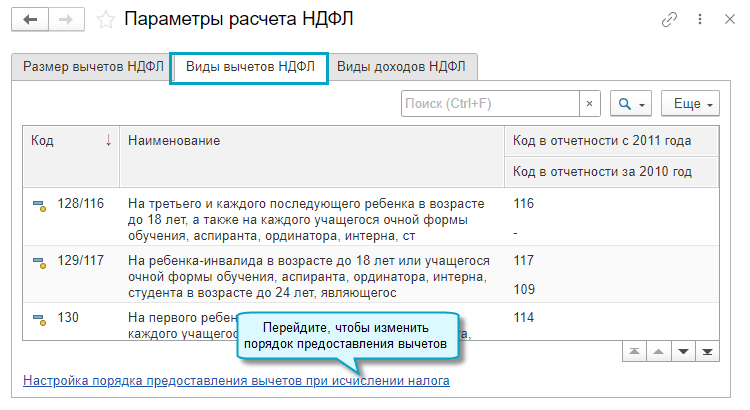 Добавлена возможность настроить порядок предоставления вычетов по НДФЛ по уведомлениям ФНС о праве на вычеты. Например, имущественные вычеты на приобретение жилья предоставлять в последнюю очередь, поскольку их неиспользованный остаток переносится на следующий год, в отличие от социальных.