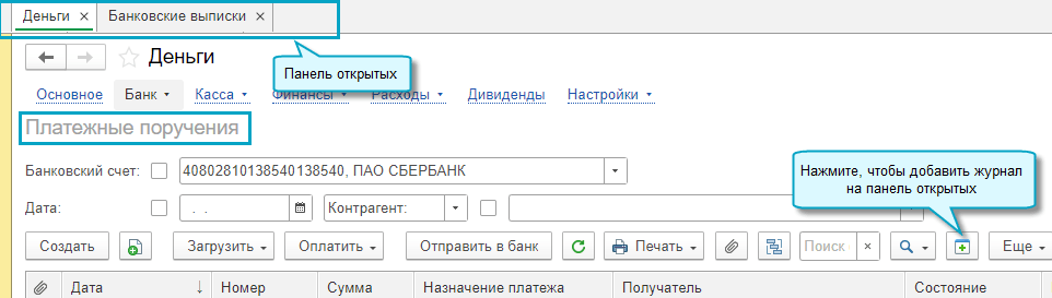 Добавлена возможность выводить на панель открытых несколько журналов документов. Это позволяет быстро переходить между журналами, без повторного открытия разделов.