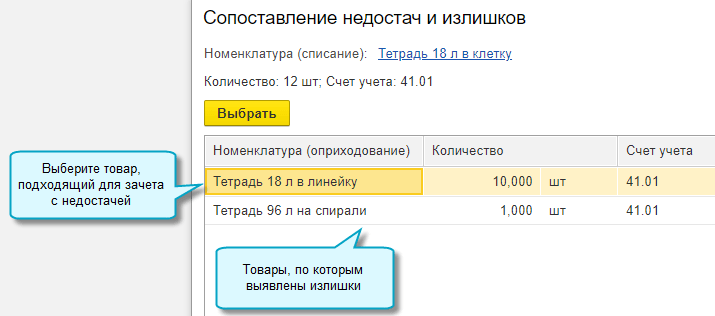Перед выполнением зачета пересортицы проверьте, что излишки и недостачи выявлены за один и тот же период, у одного и того же материально ответственного лица. Зачет выполняется в отношении товаров одного и того же наименования и в тождественных количествах (п.5.3 Методических указаний по инвентаризации имущества и финансовых обязательств, утв.Приказом Минфина РФ от 13.06.1995 № 49, п.13 ФСБУ 28/2023 "Инвентаризация").