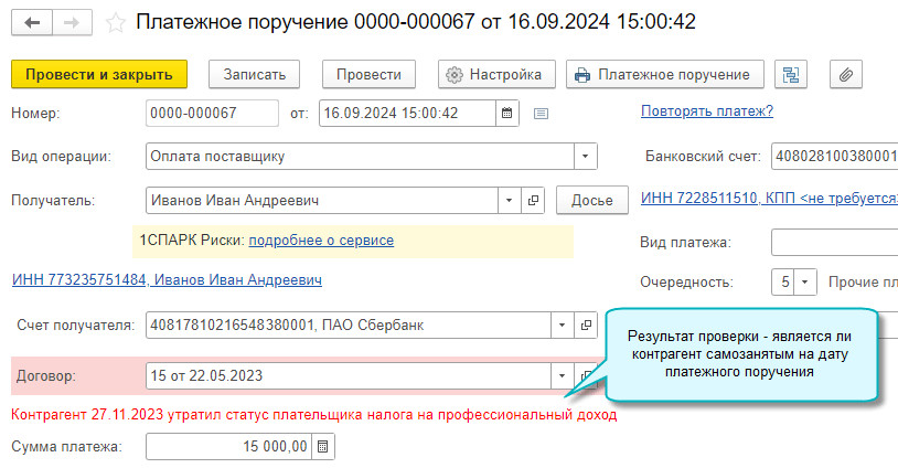 (самозанятые), теперь автоматически проверяется их статус по данным ФНС.
