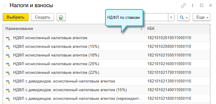 В справочник "Налоги и взносы" добавлены налоги по всем ставкам