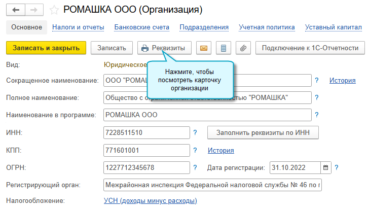 Настройка карточки организации
