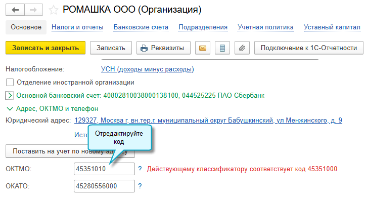 Теперь не нужно самостоятельно отслеживать изменения ОКТМО. Добавлена проверка кода по ОКТМО, соответствует ли он адресу организации на текущую дату.