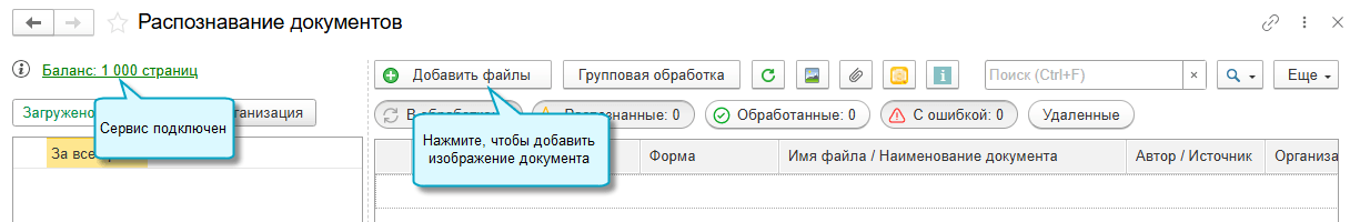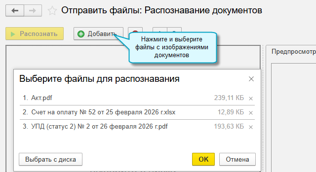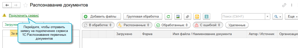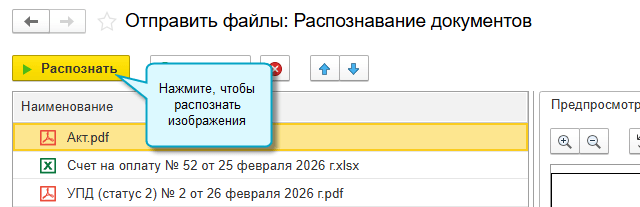 Подробнее о работе с сервисом 1С:Распознавание первичных документов см. здесь.