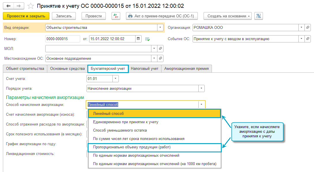 Добавлена возможность начислять амортизацию основных средств и предметов аренды с даты их принятия к учету. Этот вариант определения начала амортизации введен ФСБУ 6/2020 "Основные средства" и соответствует международным стандартам, поэтому рекомендуется организациям, которые готовят аудируемую бухгалтерскую отчетность и стремятся к сближению с МСФО. Если же для организации важно сближение бухгалтерского и налогового учета, то достаточно продолжать начислять амортизацию со следующего месяца после принятия к учету.