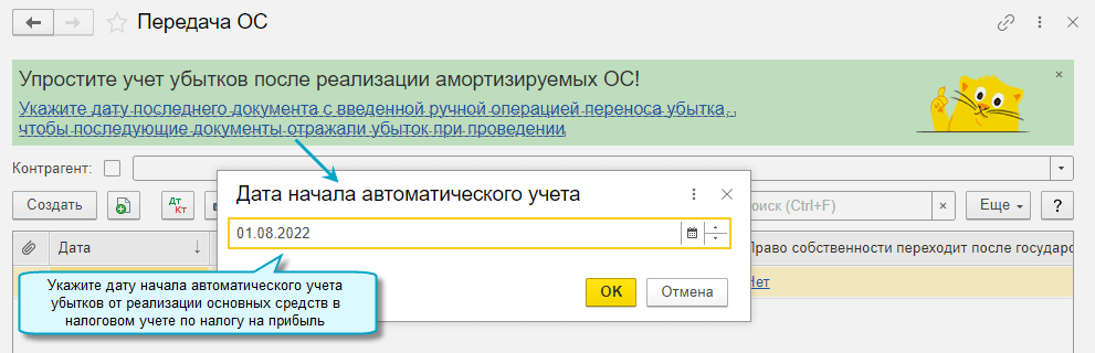 Чтобы перейти на автоматический учет убытков от реализации основных средств раньше 01.01.2023, достаточно указать дату начала его применения: