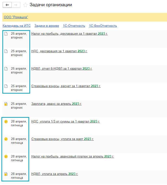 Список задач организации по подготовке уведомлений формируется с учетом сроков уплаты и сдачи отчетности по каждому налогу:
