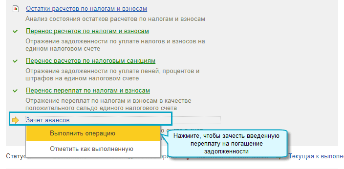 Полный интерфейс: меню "Операции - Единый налоговый счет - Помощник перехода на ЕНС".