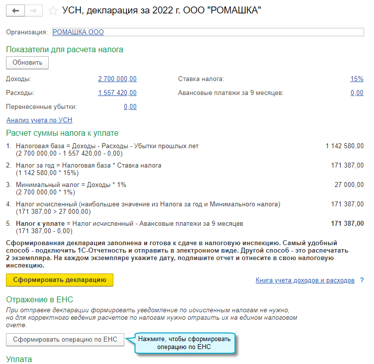Подробнее о формировании начального остатка на ЕНС см. в Статье.