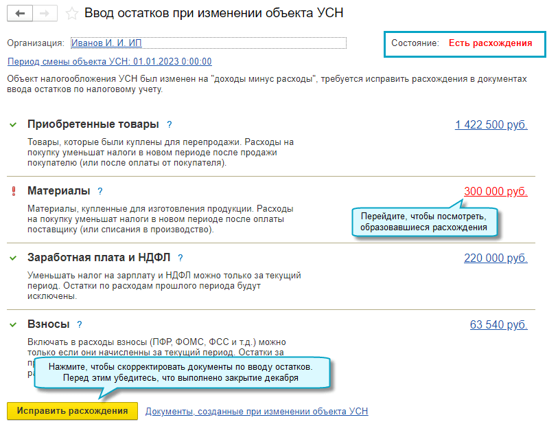Аналогично выполняется ввод остатков при переходе с УСН "доходы минус расходы" на УСН "доходы".