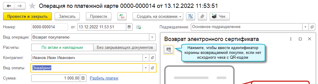 Добавлена возможность вернуть сумму покупки на электронный сертификат в случае возврата товара.