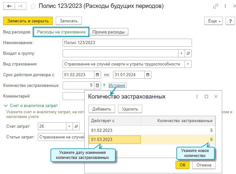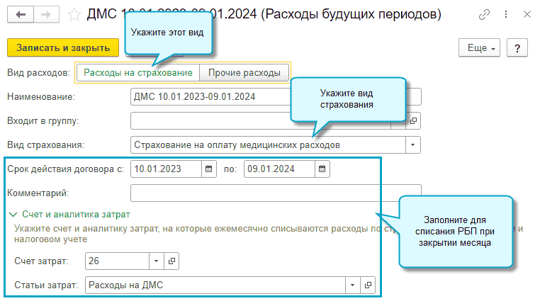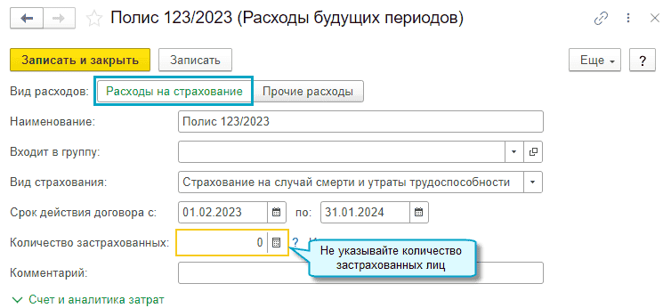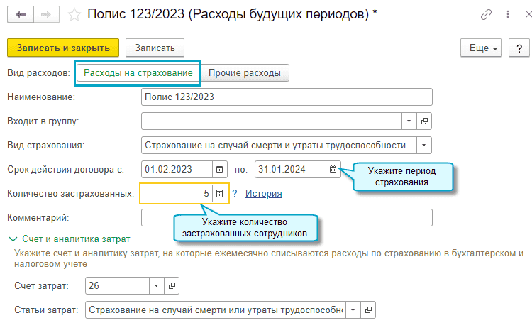 Добавлена возможность обособленного учета расходов будущих периодов на страхование. Страховые премии признаются в расходах пропорционально календарным дням действия договора, в балансе учитываются по строке Дебиторская задолженность.