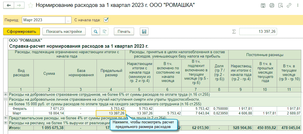 Добавлена возможность сформировать справку-расчет нормирования расходов нарастающим итогом с начала года. База нормирования расшифровывается до документа.