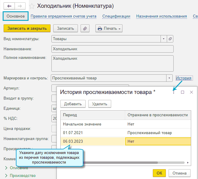 Добавлена возможность исключить из перечня прослеживаемых товаров с 06.03.2023 бытовые холодильники и морозильники, произведенные в Республике Белоруссия и ввезенные в РФ с её территории (Постановление Правительства РФ от 04.03.2023 № 345). Также имеется возможность вести историю прослеживаемости для любых других товаров.