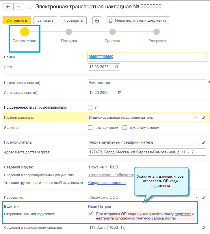 Добавлена возможность отправлять QR-код электронной перевозочной транспортной накладной водителям для ГИБДД. Отправка производится после погрузки, переадресовки и замены водителя. Для автоматической отправки достаточно сделать следующие настройки: