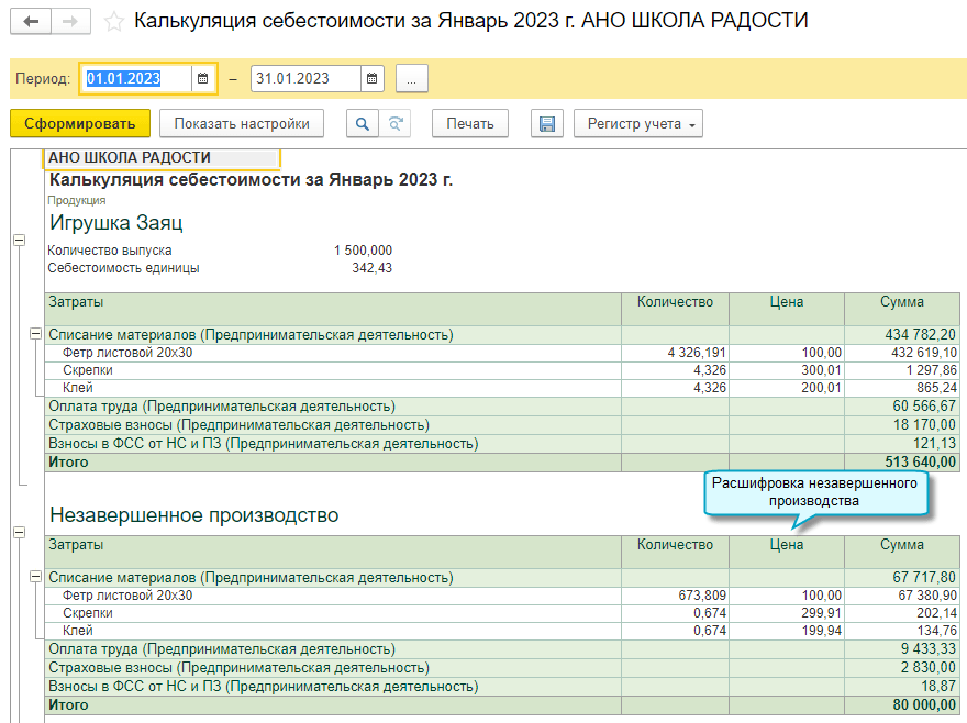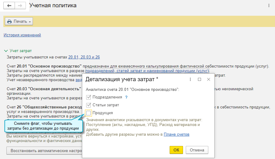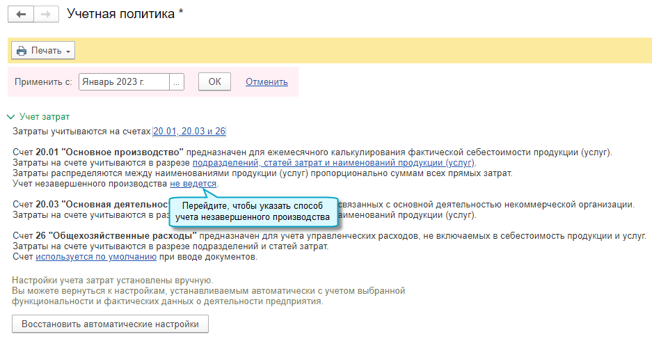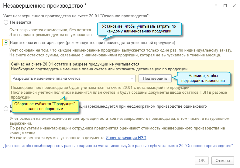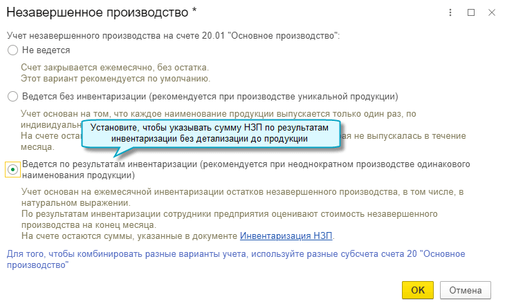 Для организации учета незавершенного производства достаточно выполнить следующую настройку: