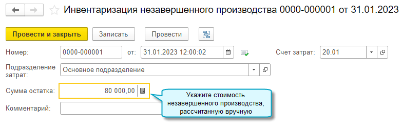 Полный интерфейс: меню "Производство - Производство - Инвентаризация НЗП".