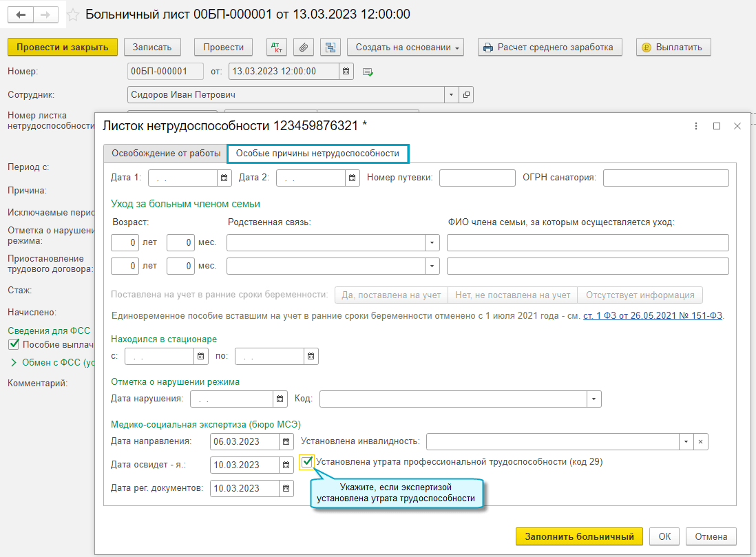 Добавлен признак утраты профессиональной трудоспособности в документы СЭДО.