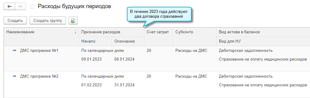 Полный интерфейс: меню "Справочники - Доходы и расходы - Расходы будущих периодов".