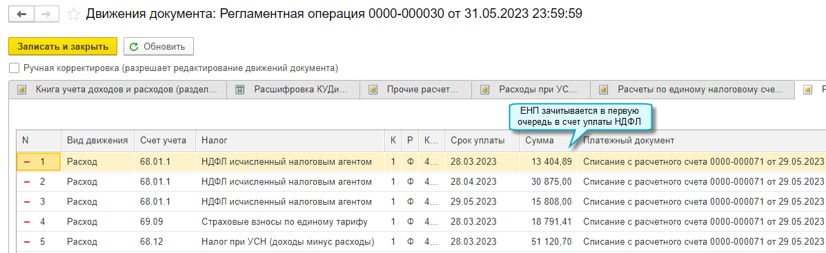 И с 30.06.2023 переплата по ЕНП зачитывается в счет уплаты НДФЛ, удержанного налоговым агентом, сразу после сдачи уведомления об исчисленных суммах НДФЛ, не дожидаясь наступления срока уплаты.