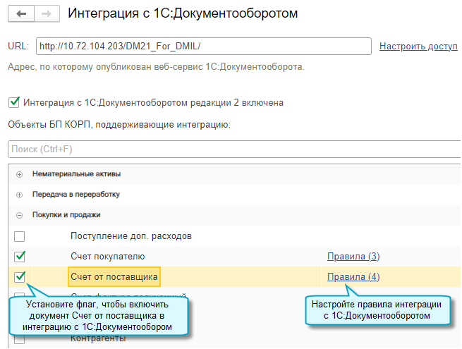 Добавлена возможность настроить интеграцию с 1С:Документооборотом по следующим документам: