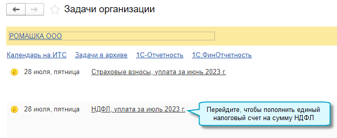 Подготовка платежного поручения на единый налоговый платеж на сумму НДФЛ перенесена в отдельную задачу организации по уплате НДФЛ. Поскольку НДФЛ уплачивается не за месяц начисления заработной платы, а по периодам его удержания - в большинстве случаев, это периоды с 23-го числа предыдущего месяца по 22-е число текущего месяца.