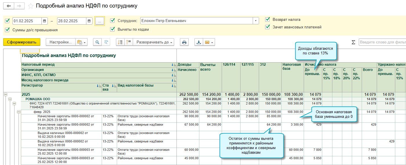 Отчеты по НДФЛ формируются с учетом ставок НДФЛ, действующих с 01.01.2025.