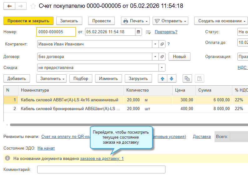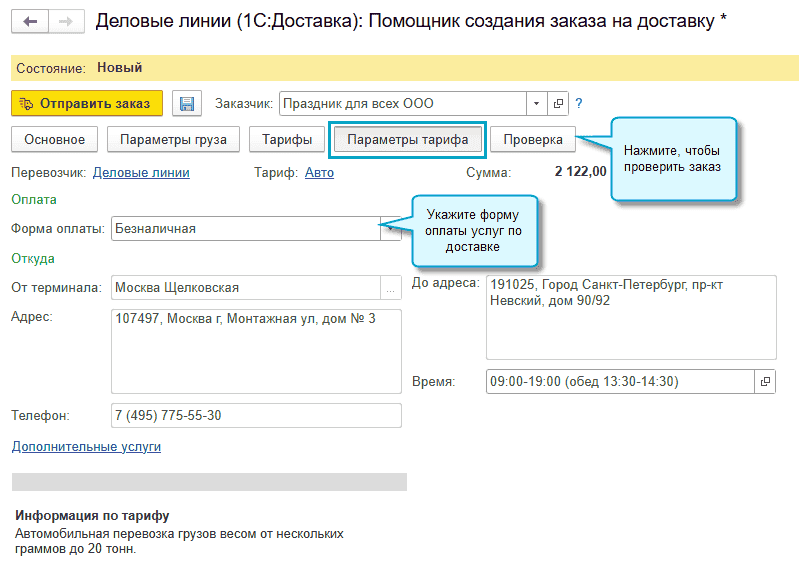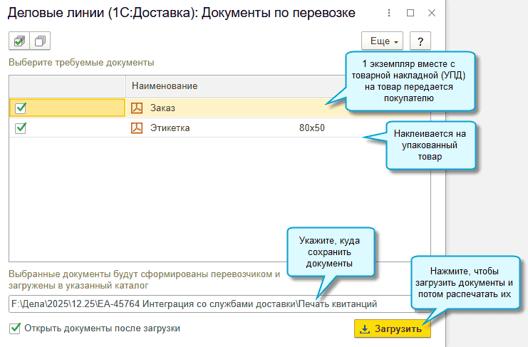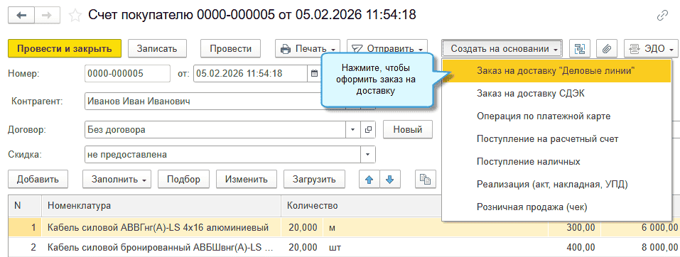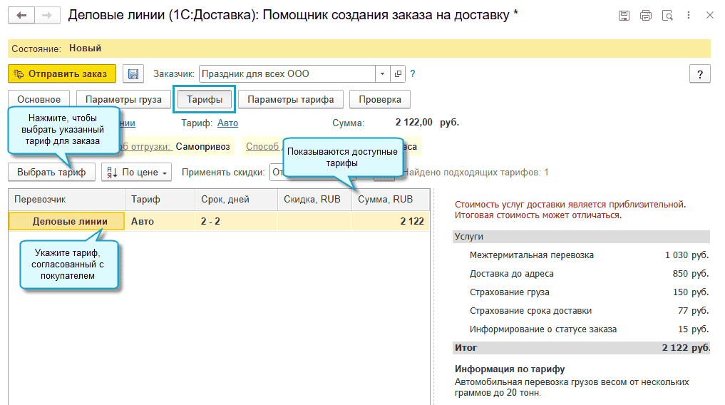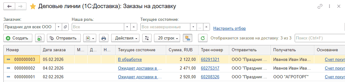 Добавлена возможность оформлять и передавать заказы на доставку в сервисы доставки прямо из счета покупателя и документов реализации. Поддерживается интеграция с сервисами доставки "Деловые линии" и "СДЭК", а так же имеется возможность отслеживать состояние заказов на доставку.