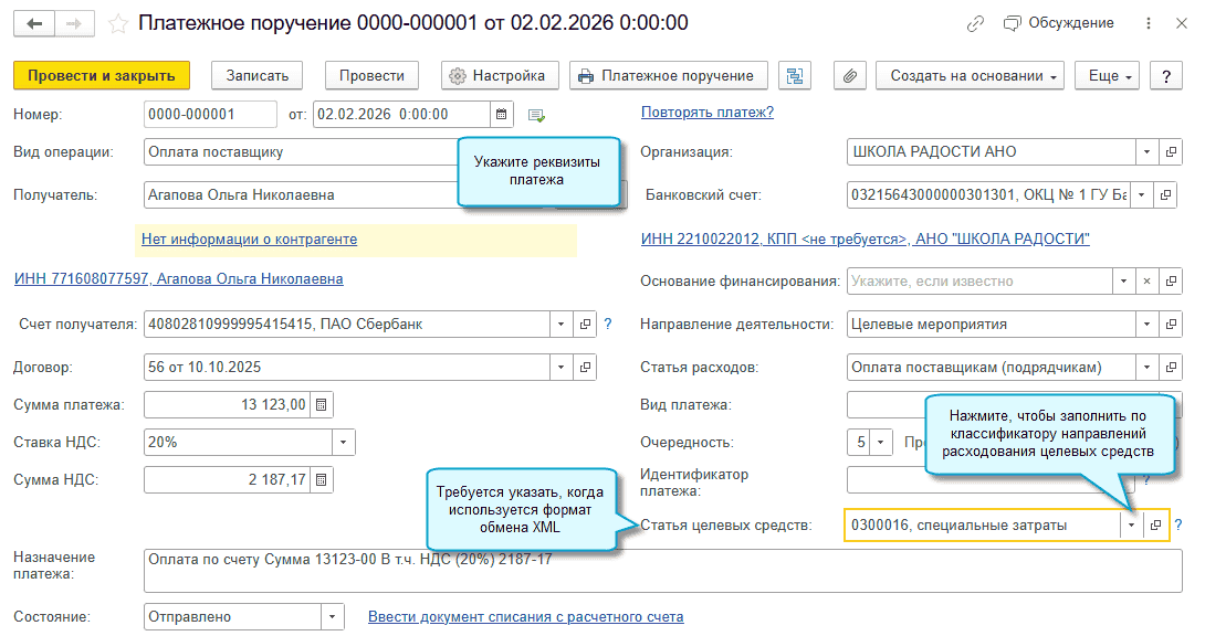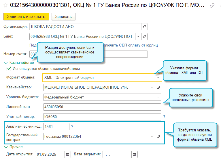 Добавлена возможность выгружать и загружать платежи через Казначейство (ГИИС "Электронный бюджет"). Доступны два формата обмена - XML и TXT.
