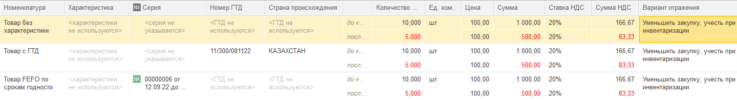 Такие ситуации, в которых в одном документе могут быть прослеживаемые товары с НДС и без НДС, возможны и в других документах: