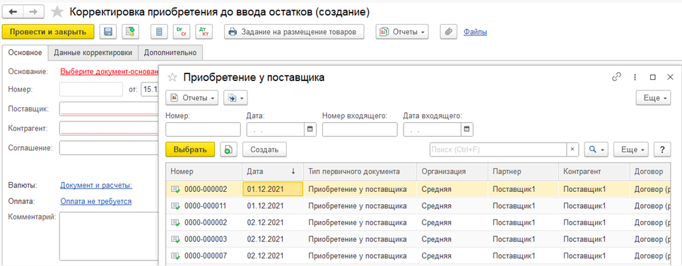 Заполнение учетных данных может выполняться как до указания фактических данных, так и после. В любом случае при указании фактических данных, если объект отсутствует в списке, он добавляется в список. Если заполнение учетных данных выполняется после указания фактических и ТМЦ уже есть в списке, то будет заполнено количество по учету. Если ТМЦ нет в списке, то будет добавлена новая строка и заполнено количество по учету.