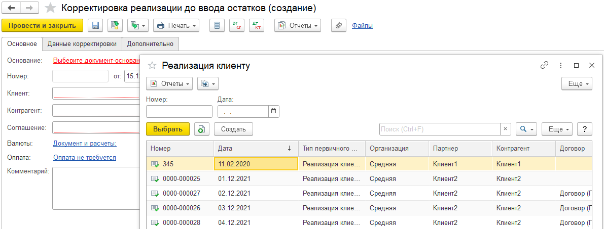 На закладке Основное в документе оплаты необходимо выбирать операцию Поступление оплаты от клиента. Также необходимо указать плательщика – это может быть предопределенный элемент Розничный покупатель (обезличенный) или контрагент с видом Физическое лицо (персонализированный розничный покупатель), Индивидуальный предприниматель или Юридическое лицо.