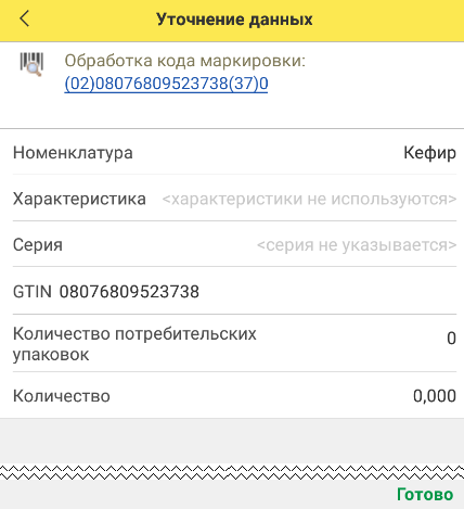После подтверждения удаления код маркировки будет удален из списка отсканированных, а количество товара будет уменьшено на количество указанное в коде.
