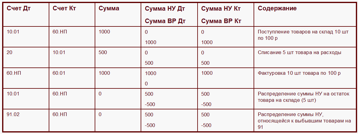 Проводки по товарам для порядка отражения в НУ «Отражать при фактуровке» представлены в таблице.
