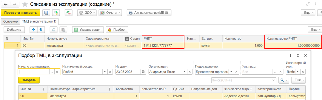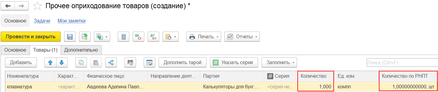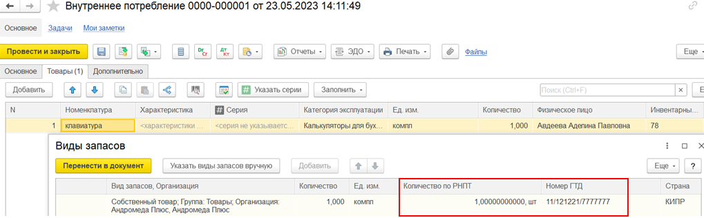 В сценарии недопоставки документ Списание расхождений между поступлением и приобретением также закрывает расхождения в «Товарах организаций» по собственным товарам по номерам ГТД и по Количеству по РНПТ.