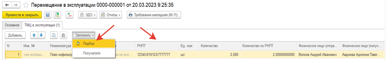 Табличная часть документа заполняется автоматически расхождениями по распоряжениям (по данным регистра «Товары к поступлению»).
