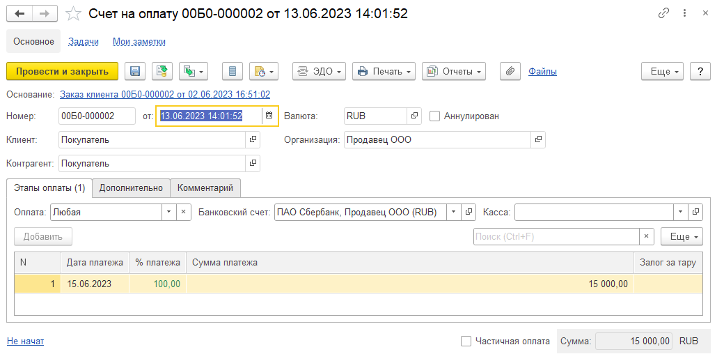 На стороне организации-продавца документ будет загружен при очередном информационном обмен с оператором ЭДО по настроенному расписанию (для клиент-серверного варианта) или при выполнении команды Отправить и получить из списка Главное – ЭДО - Текущие дела ЭДО.