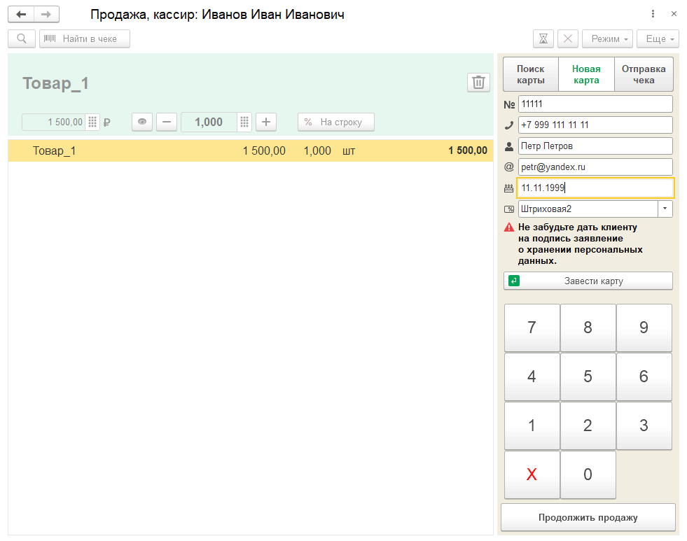 При регистрации новой карты во внешнем РМК указываются данные клиента.