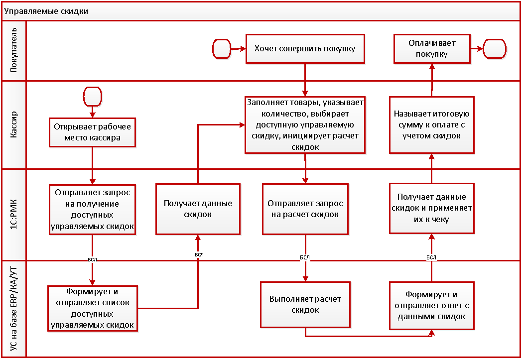 Во внешнем РМК могут применяться скидки, настроенные в управляющей системе, в том числе: