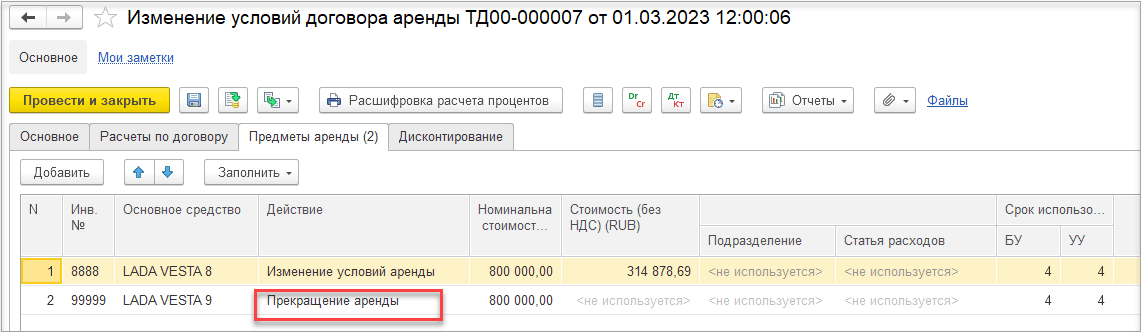Не поддерживаются сценарии по изменению: справедливой (начальной) стоимости для договоров аренды по фактической стоимости и суммы вложений лизингодателя для договоров лизинга.
