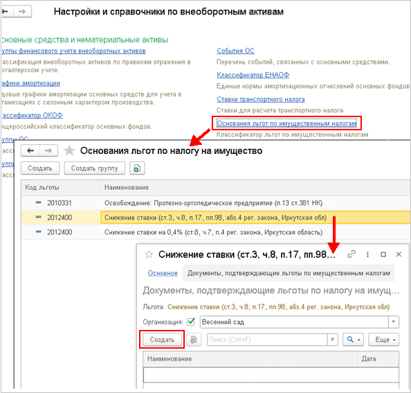 Добавлен новый справочник для хранения реквизитов документов, подтверждающих льготы по имущественным налогам. Используется при заполнении заявления о предоставлении налоговой льготы.