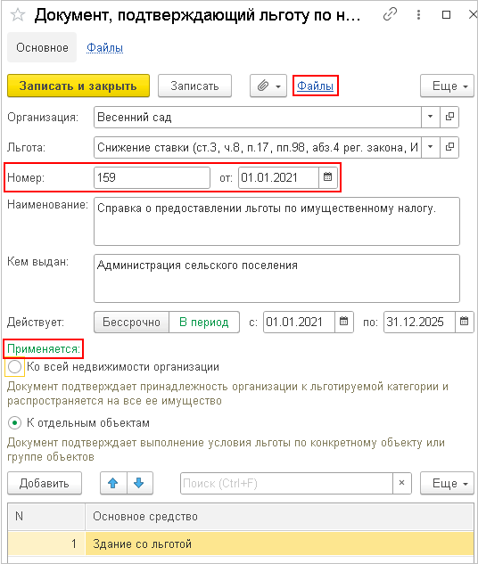 В форме документа, подтверждающего льготу, прикрепляется скан оригинала документа, указываются реквизиты документа-основания льготы, а также применимость льготы.