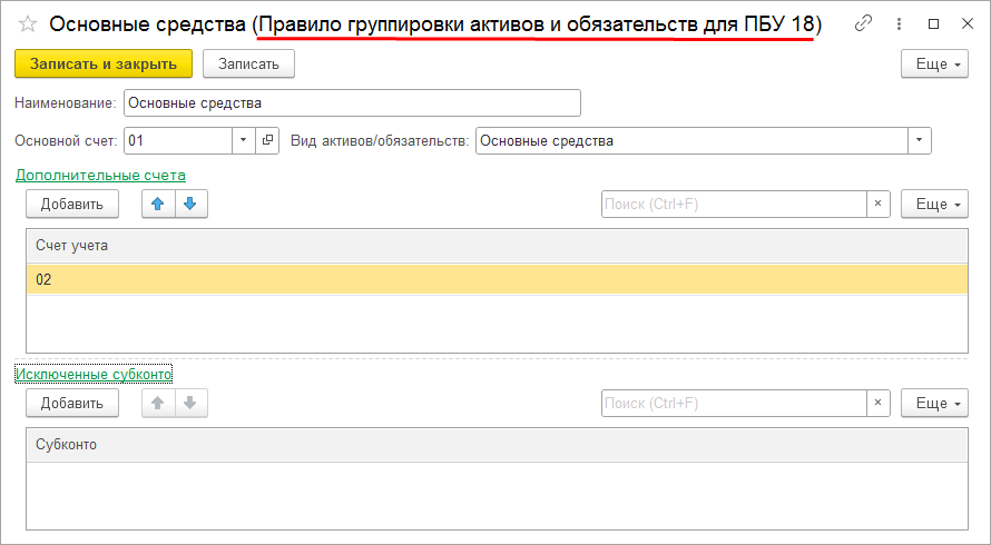 До версии 2.5.16 сопоставление счетов с видами активов и обязательств однозначно прописано в коде системы. Изменение указанных сопоставлений или добавление новых настроек, например, при изменении типового плана счетов, на пользовательском уровне не поддерживается. С версии 2.5.16 такой вариант настройки останется для организаций, применяющих затратный метод учета по ПБУ 18 (с отчетности за 2020 год затратный метод не рекомендуется к применению). Для организаций, применяющих балансовый метод учета по ПБУ 18, добавлена возможность либо сохранить использование типового определенного в коде системы сопоставления счетов с видами активов и обязательств, либо настраивать группировки видов активов и обязательств с использованием элементов нового списка Правила группировки активов и обязательств для ПБУ 18 на пользовательском уровне.