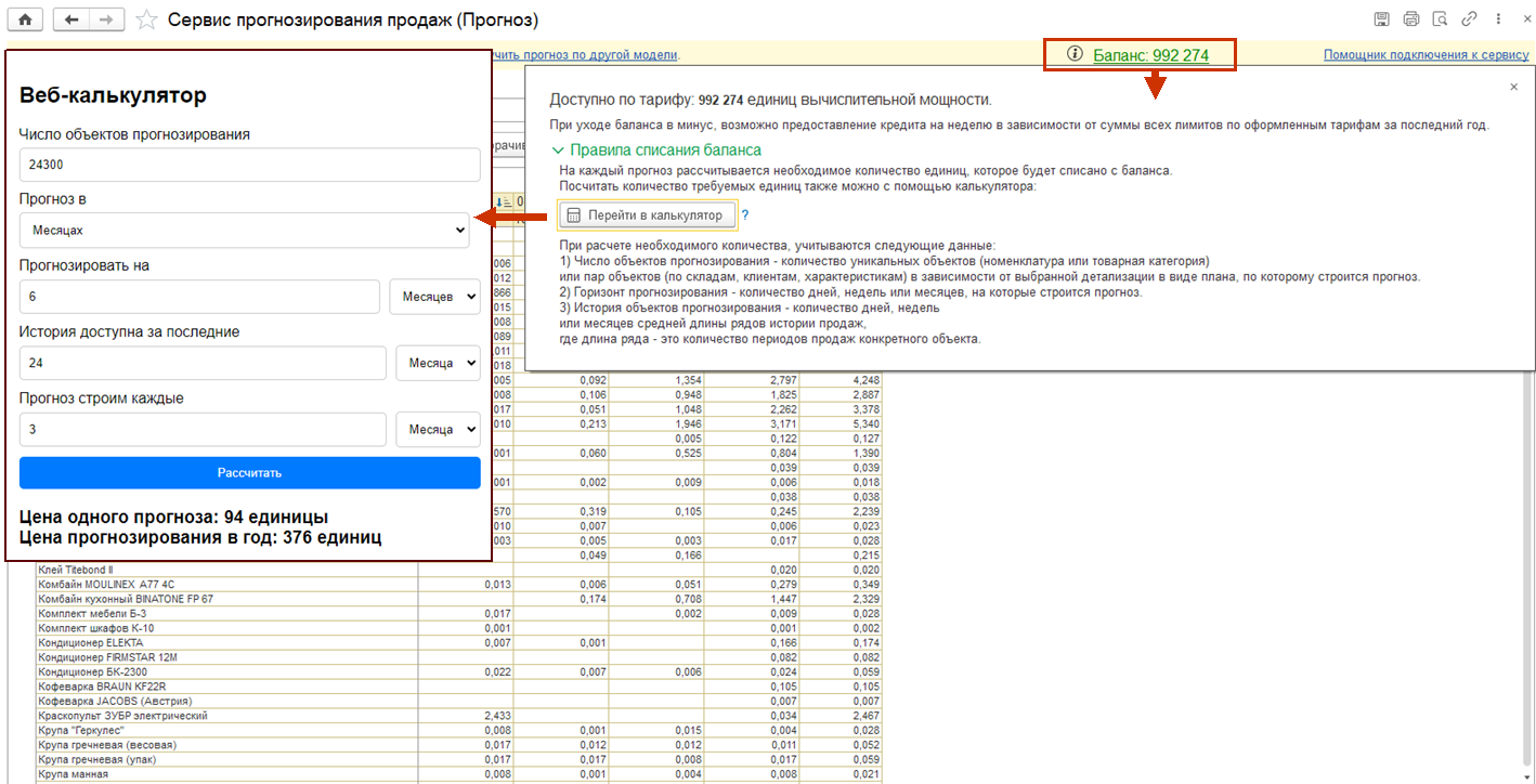 ■ В связи с выходом сервиса прогнозирования в тираж реализована функциональность отображения баланса сервиса прогнозирования и информирования пользователя о том, сколько единиц баланса будет затрачено на новый прогноз.