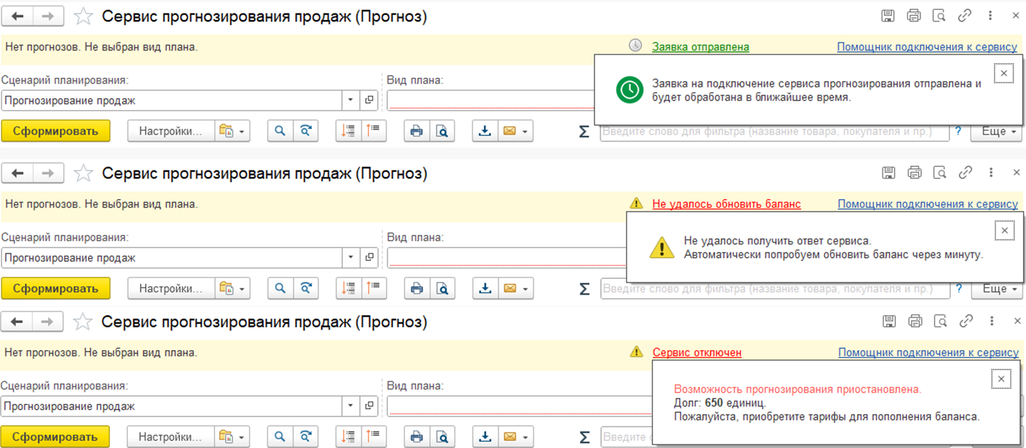 Добавлены дополнительные проверки по корректности настроек сервиса прогнозирования и вида плана.